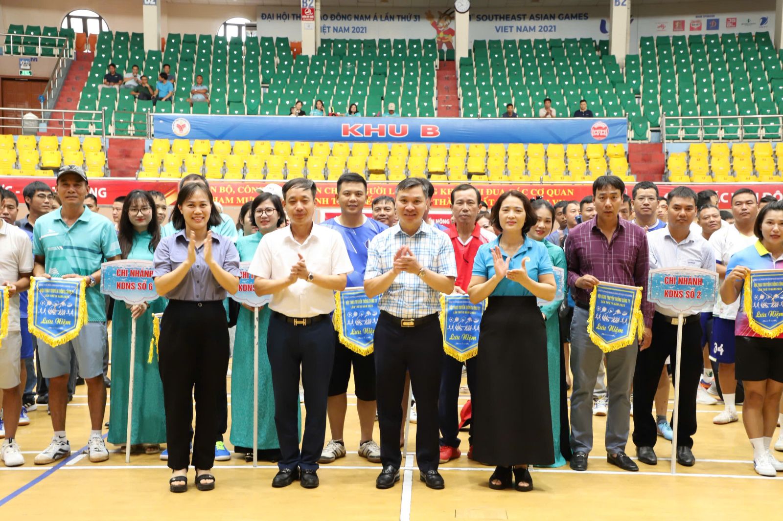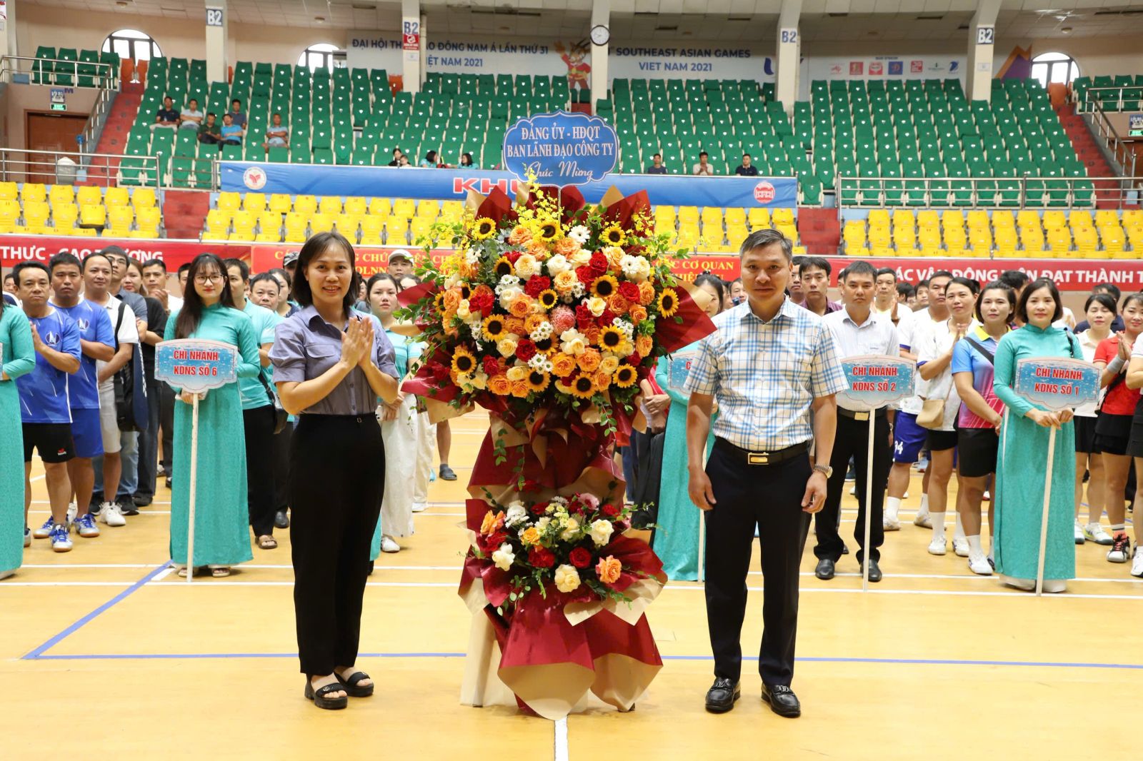 Đồng chí Vũ Mạnh Dũng – Bí thư Đảng ủy – Chủ tịch HĐQT Công ty tặng hoa chúc mừng Hội thao